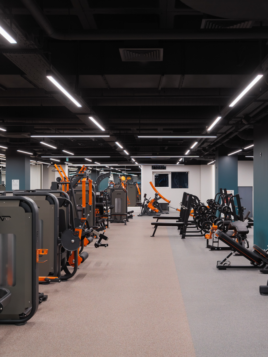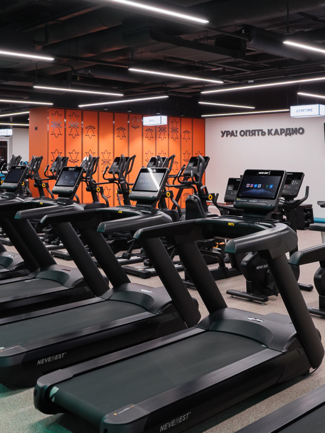 В зале фитнес-центра в Казани 150+ спортивных тренажеров Neverest для кардиотренировок и силовых нагрузок. Отдельно оборудованы функциональная зона с рамой для кроссфита и зона свободных весов.
